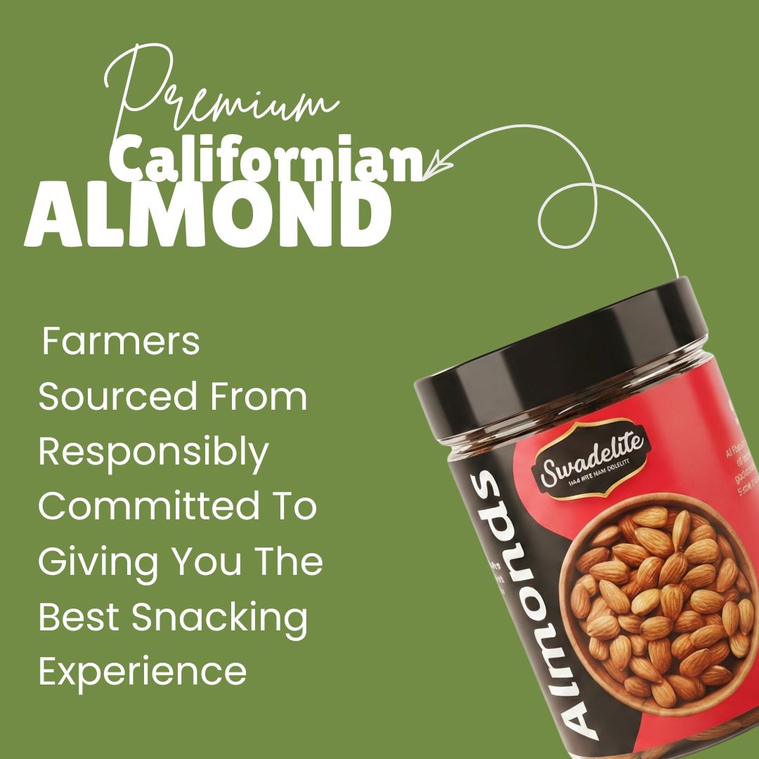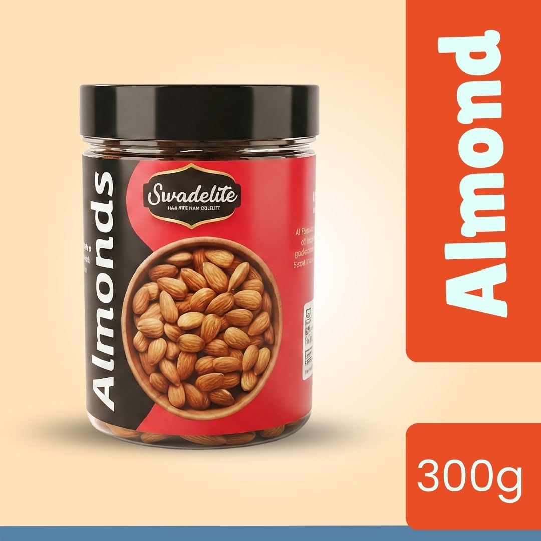 Swadelite Premium California Almonds – 300g | Extra Crunchy & Bold Size Badam | Immunity Booster Dry Fruit | Ideal for Kids, Fitness & Gifting